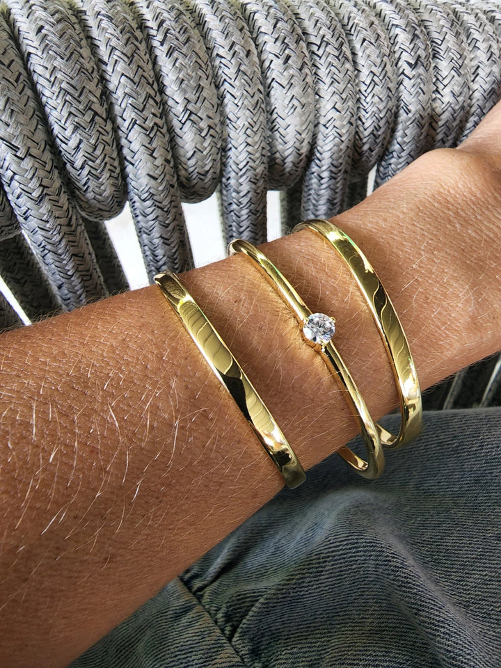 MORGAN bracelet is a vision in 14k goldfilled. Its delicate band and sparkly design is ultra wearable, hypoallergenic, and perfect for adding glamour to any look. Add a touch of glitter to your everyday outfit!