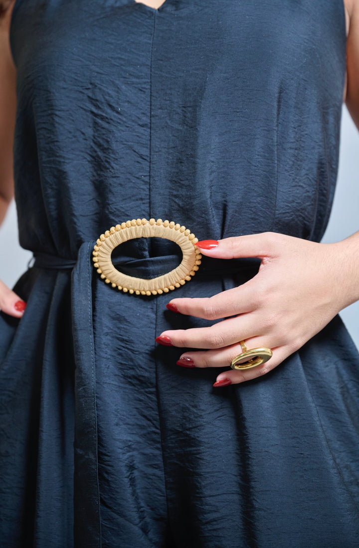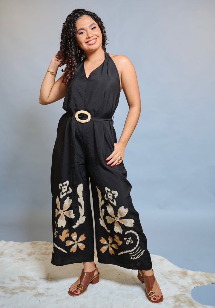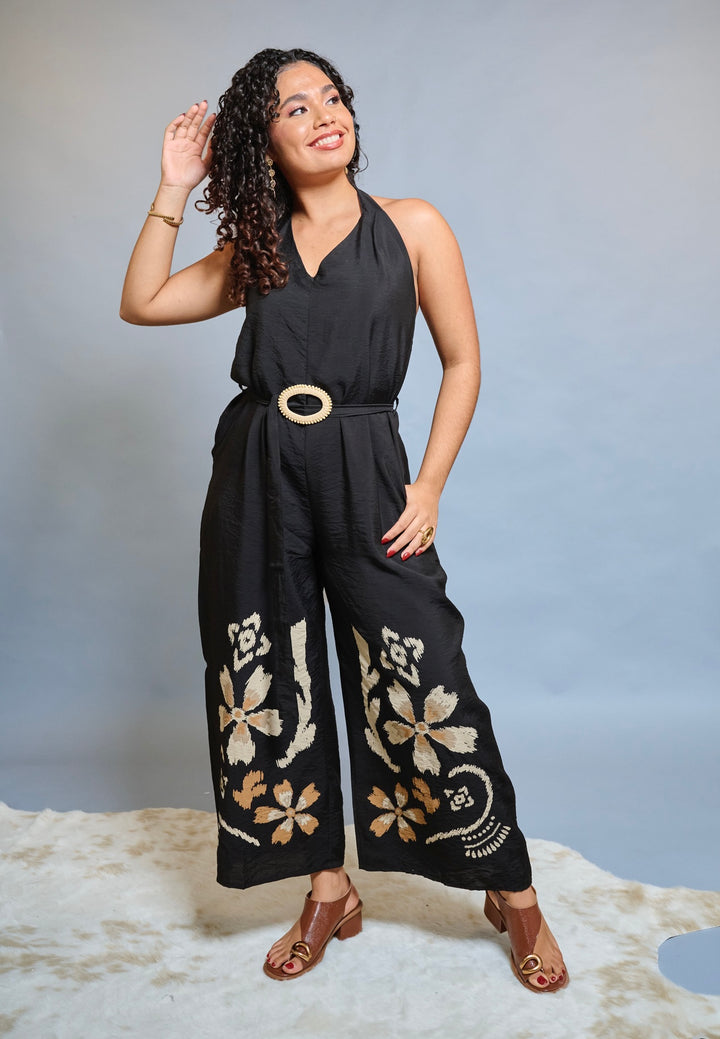 Elegancia y frescura se encuentran en este jumpsuit colombiano en tono terracota. Su escote halter con detalle de cinturón trenzado realza la silueta, mientras que los bordados florales en las piernas aportan un aire artesanal y distinguido. Una pieza sofisticada y versátil, perfecta para eventos de día o de noche donde quieras destacar con estilo auténtico.
