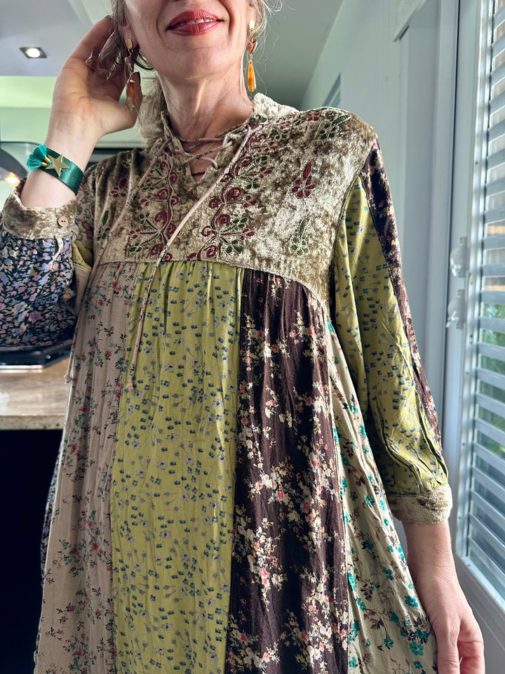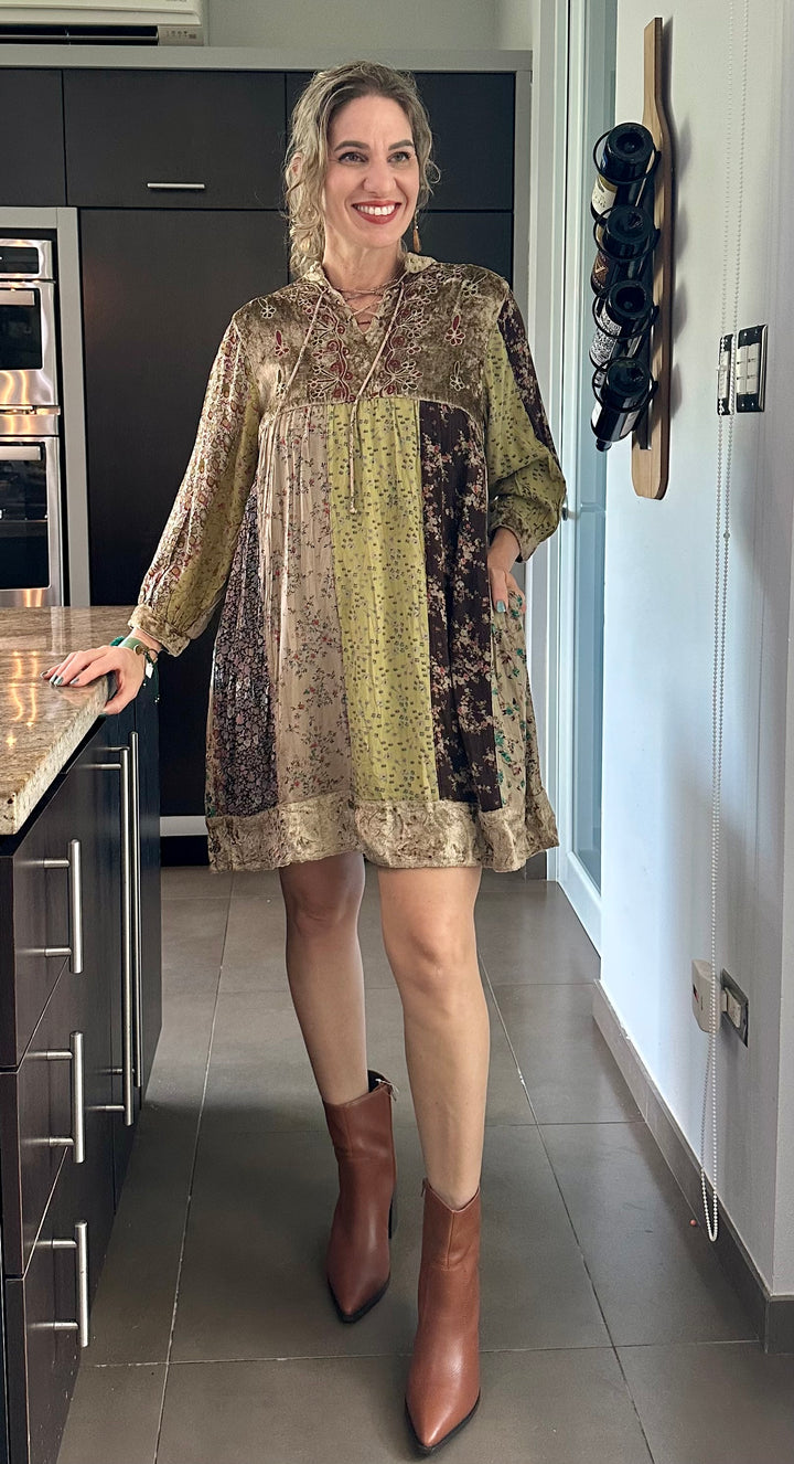 Con aires bohemios y un encanto artesanal, el Wild Garden Dress es una pieza confeccionada 100% en India con detalles florales, bordado delicado y un mix de estampados que capturan la esencia de lo libre y natural. Su corte relajado y bolsillos laterales lo hacen tan cómodo como chic. Perfecto para días soleados o eventos casuales con un toque de estilo.